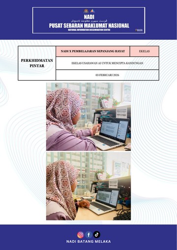 3 Februari 2026 | Aktiviti TerkiniPada 03 Februari 2026 bersamaan hari Selasa, Webinar eKelas Usahawan AI untuk Mencipta Kandungan telah diadakan. Tujuan utama program ini adalah untuk mendedahkan para usahawan dan pencipta kandungan kepada potensi kecerdasan buatan (AI) dalam mempercepatkan proses penciptaan kandungan yang kreatif, menarik, dan berkesan untuk menarik perhatian pelanggan serta mengurangkan tekanan dalam penghasilan idea.